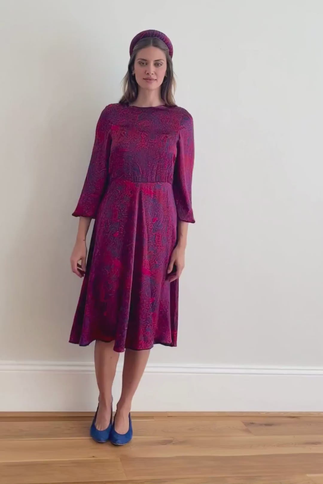 Reversible Lucy Silk Dress Fire Ocean/Navy