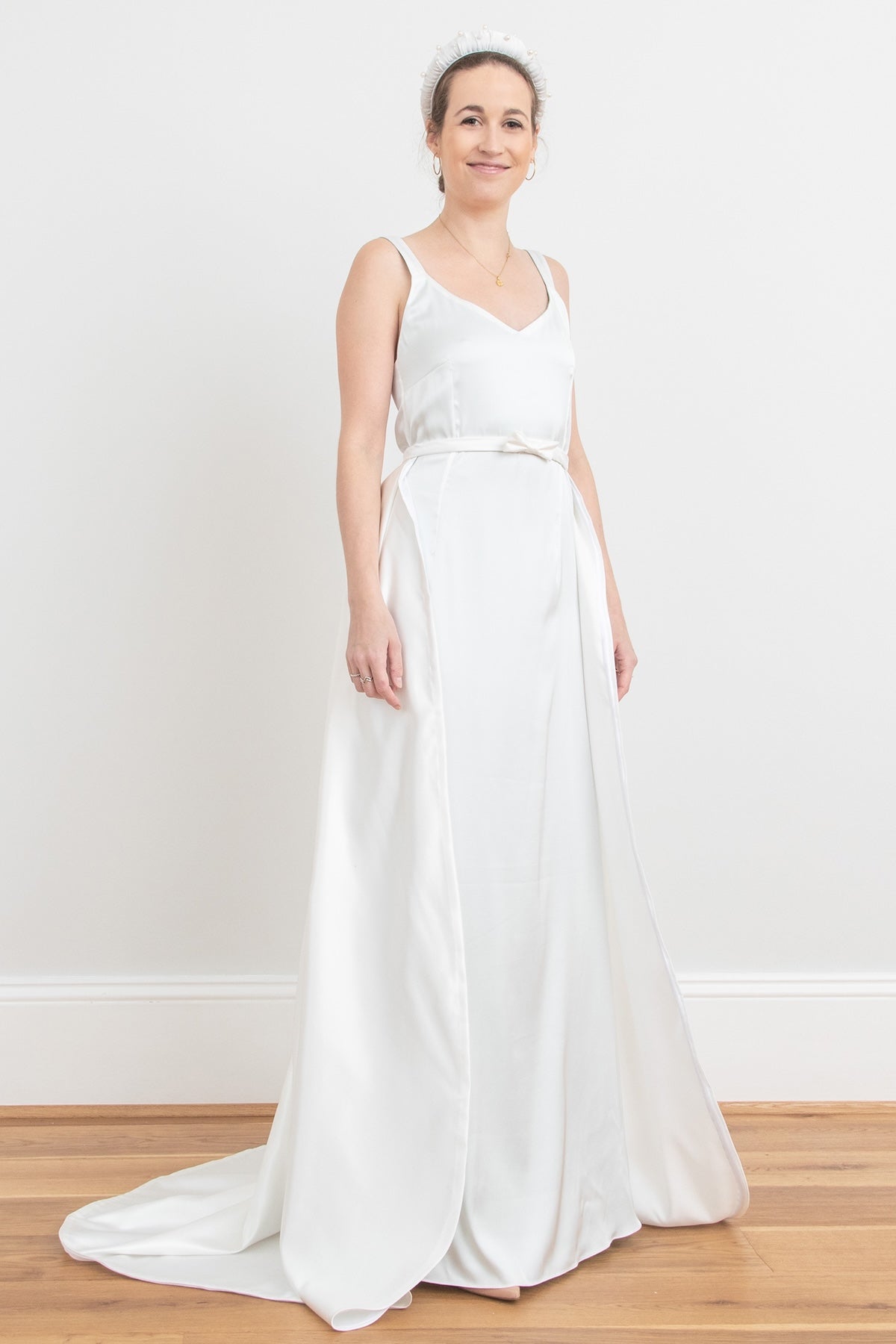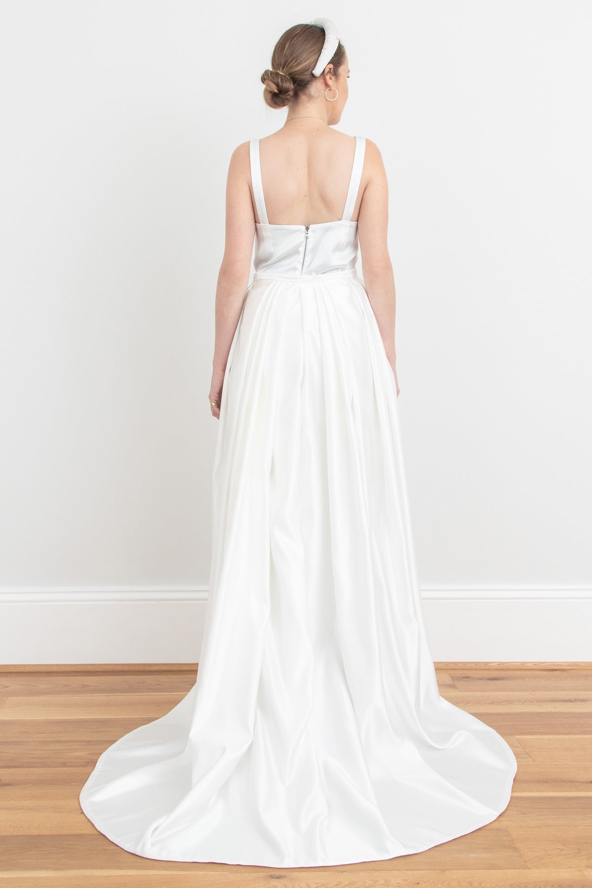 Detachable Duchess Satin Pleated Overskirt