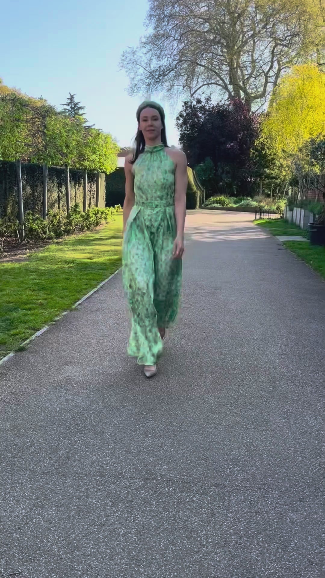 A halter neck style jumpsuit in our new Meadow Whispers silk satin print. It has a flattering bodice and box pleats to create movement when walking.