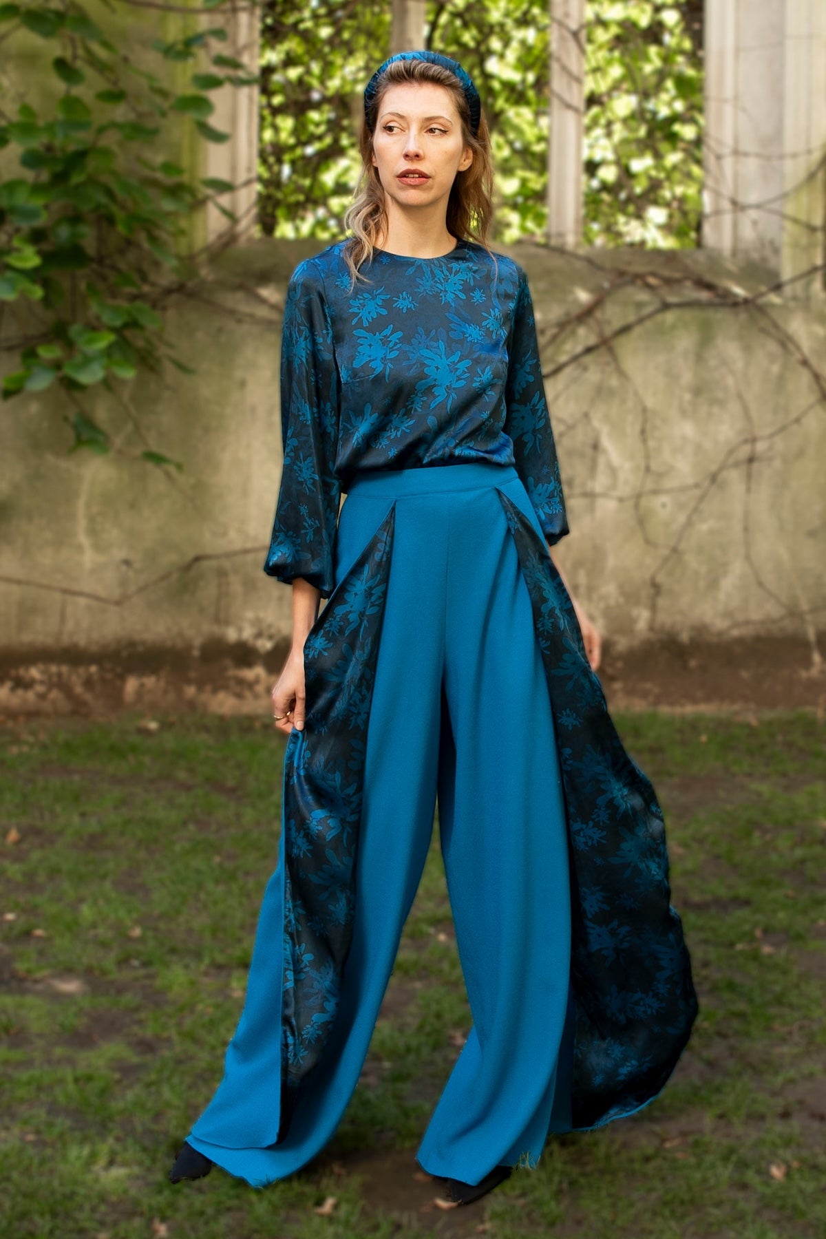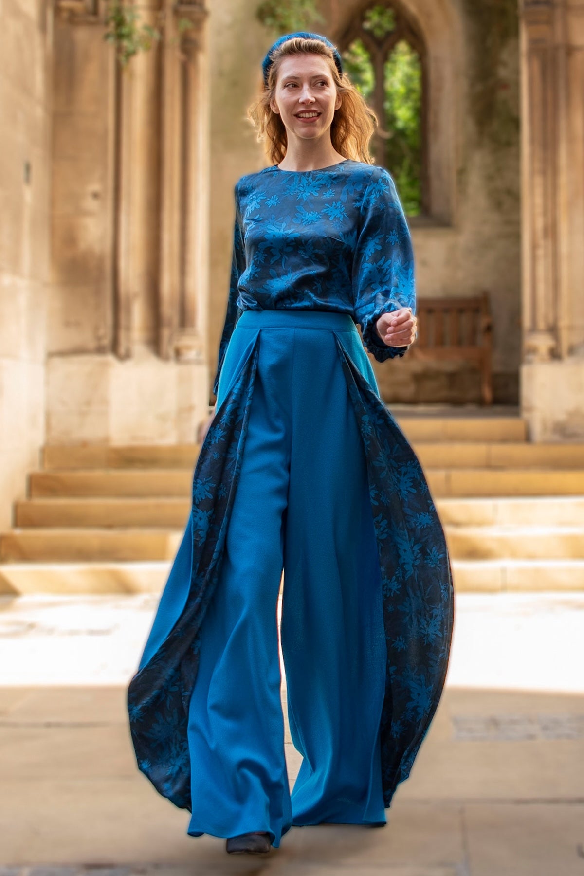 Penelope Trousers Italian Wool Crepe Teal/Teal Meadows