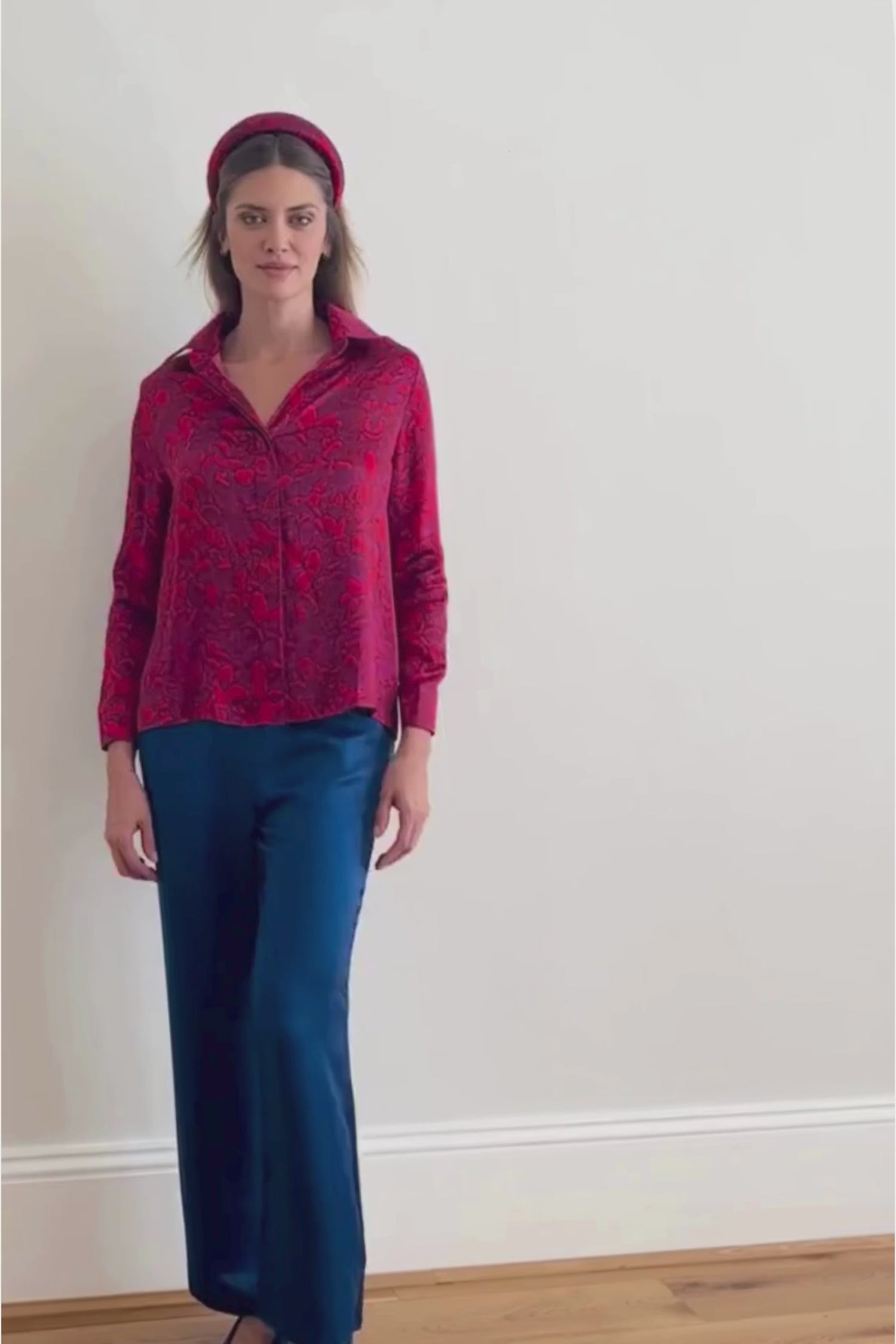 Lisa Silk Satin Shirt Scarlett Pebbles